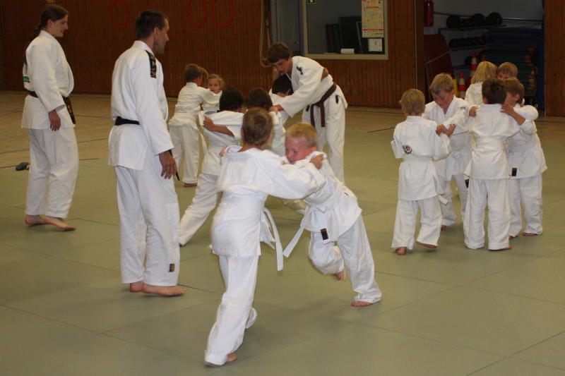 Nach dem Aufwärmen und der Fallschule stehen wieder Würfe auf dem Programm.